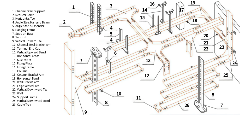 A cable support system is designed to hold, organize, and protect electrical cables and wires in a variety of environments. These systems are crucial for safe and efficient cable management, preventing hazards and ensuring proper wiring in buildings, industries, and other settings.